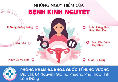 Nếu bạn đang lo lắng về tình trạng kinh nguyệt không đều, trễ kinh, rong kinh hay đau bụng kinh kéo dài, đừng chần chừ khiến bệnh âm thầm tiến triển nặng hơn. Hãy chủ động thăm khám sớm tại Phòng Khám Đa Khoa Quốc Tế Hùng Vương – 4 Nguyễn Gia Tú, P. Phú Thuỷ, Tỉnh Lâm Đồng để được bác sĩ chuyên khoa tư vấn và điều trị kịp thời.